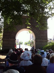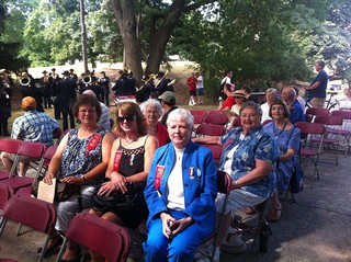 75th ANNIVERSARY COMMEMORATION OF THE DUVCW BENCH AT CAMP RANDALL MEMORIAL PARK: While it was a short term project, Tent #23 along with sister tents, Cordelia A.P. Harvey Detached Tent #21 of Manitowoc, WI and the Mary Hutchins Detached Tent #22 of Milwaukee, WI came together to commemorate the 75th anniversary of the DUVCW bench at Camp Randall Memorial Park in Madison, WI. Camp Randall was a Union Army training facility during the Civil War for more than 70,000 recruits. Later, a hospital and stockade for 1,400 Confederate prisoners of war was located at the camp. On June 30, 2012 the daughters honored our ancestors by commemorating the 75th anniversary of the original bench dedication which occurred on September 5, 1937. The bench was erected by the daughters as a tribute to our fathers, the Grand Army of the Republic. See pictures below.