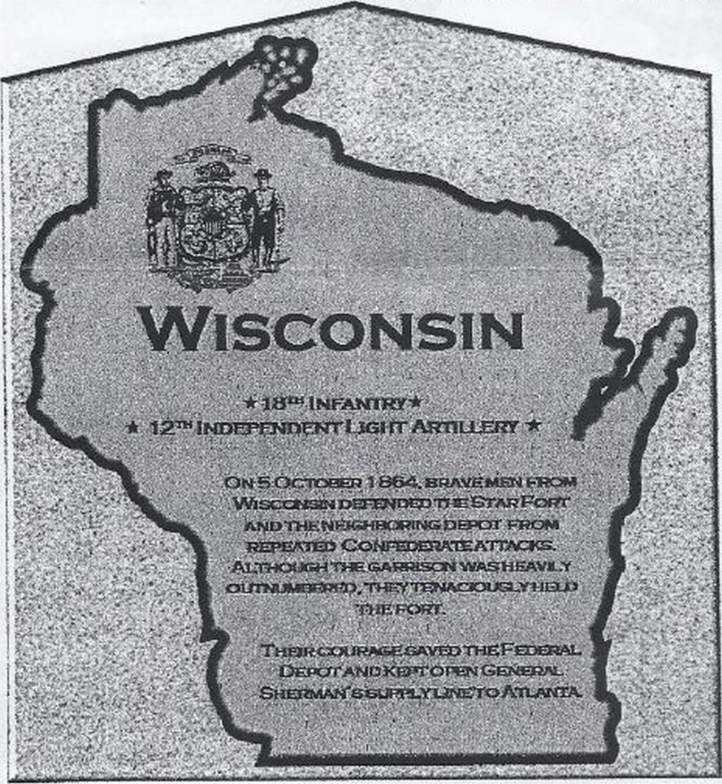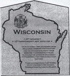 MONUMENT AT THE ALLATOONA PASS BATTLEFIELD NEAR CARTERVILLE, GA HONORING THE WISCONSIN SOLDIERS WHO FOUGHT AT ALLATOONA PASS: Tent #23 has sent donations to the Etowah Valley Historical Society who is partnering with the SUVCW and DUVCW of Georgia and South Carolina to place a monument at the Allatoona Pass Battlefield near Carterville, GA honoring the Wisconsin soldiers who fought at Allatoona Pass on 5 October 1864. The 18th Wisconsin Infantry and the 12th Wisconsin Independent Light Artillery were involved in this battle. Monuments have already been erected to commemorate the involvement of regiments from Illinois, Iowa, Minnesota and Ohio. The Wisconsin monument which is the final one will be made of Wausau red granite which is a native stone of the state of Wisconsin. Plans are being made to complete this project and dedicate the Wisconsin monument in the fall of 2014, ideally on October 5th. Our sister tent, Amanda Stokes Detached Tent #2 of Alpharetta, GA has extended an invitation for us to attend this historic event. Click on image to enlarge.